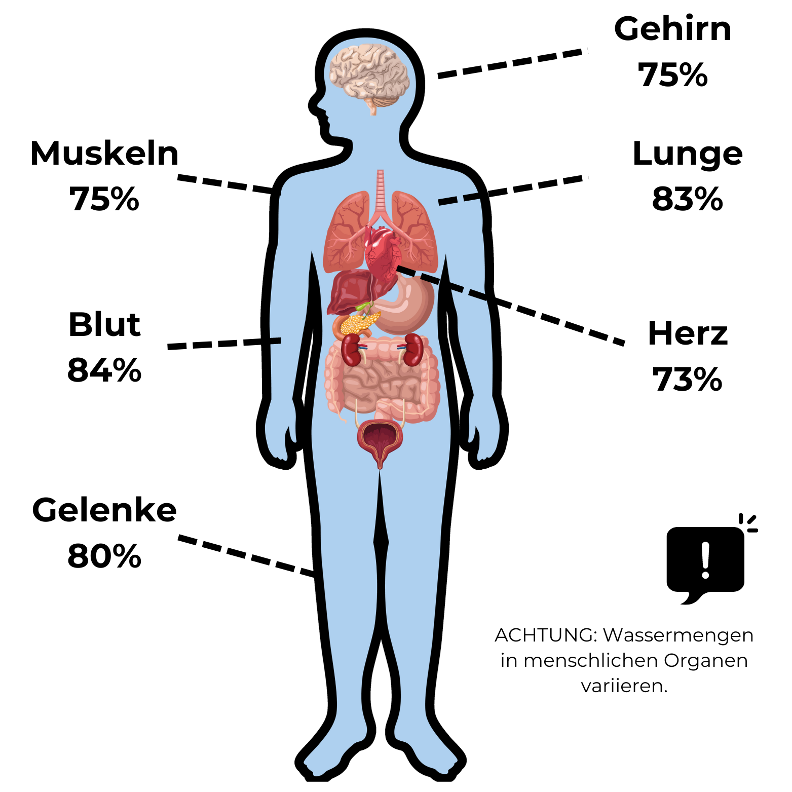 Wasserstoff ist ein essentieller Bestandteil unseres Körpers, mit einem Anteil von 63% an der Gesamtzahl der Atome im menschlichen Organismus und einem durchschnittlichen Gewichtsanteil von 9.3% des Körpergewichts.
