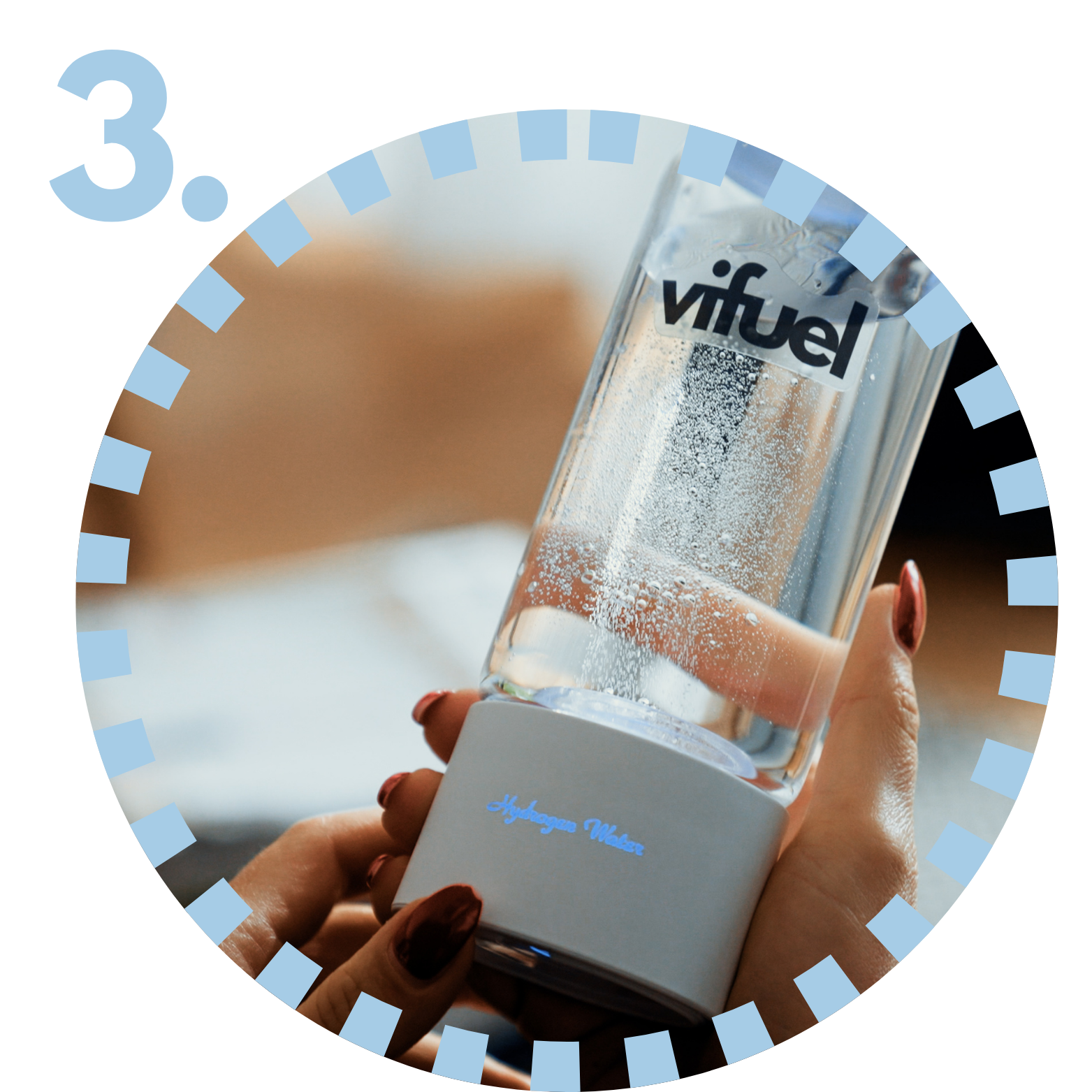 Durch die innovative Technologie von Vifuel PRO wird Wasser aufgespalten, und das H₂-Molekül freigesetzt. Dieses hydrogenreiche Wasser unterstützt den Körper dabei, natürliche Energie zu produzieren, ohne auf künstliche Stimulanzien wie Koffein zurückgreifen zu müssen. Das Ergebnis: Lang anhaltende Energie, ohne den typischen "Crash."