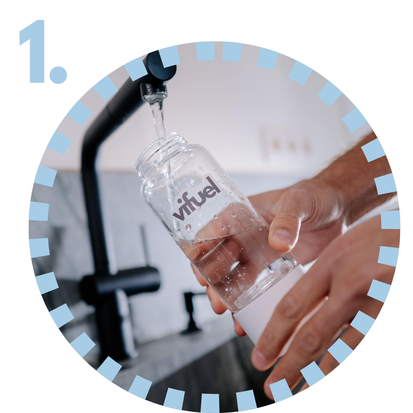 Fülle deine Vifuel PRO Flasche mit deinem Lieblingswasser – ob still oder sprudelnd.